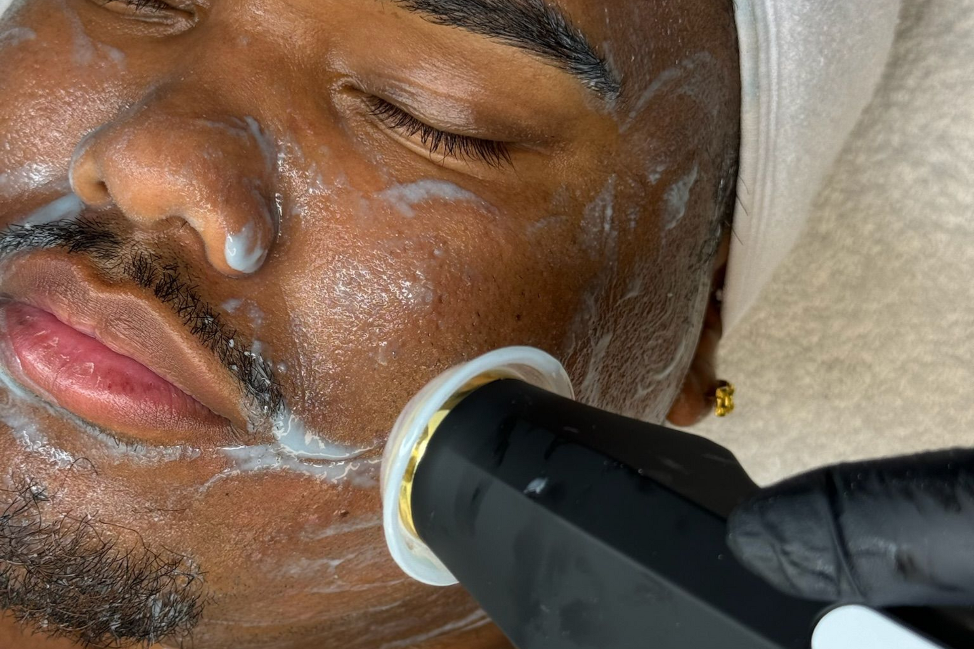 Exfoliatie: De huid wordt zachtjes geëxfolieerd met behulp van een speciale capsule die onzuiverheden verwijdert en de huid gladmaakt.
